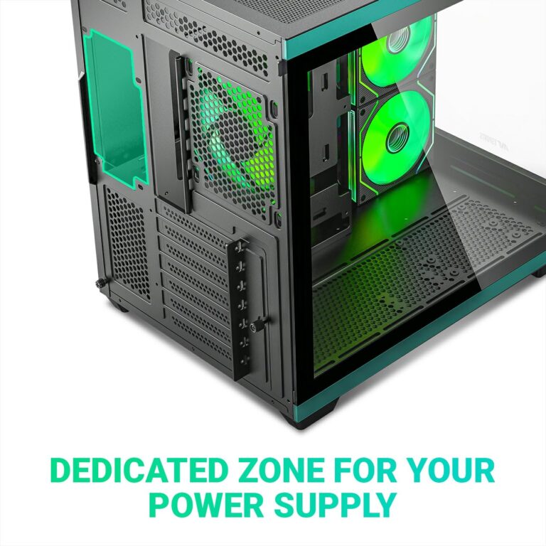 • Green Black, Mid-Tower, 426 x 285 x 398 mm, Tempered Glass Front & Side Panel